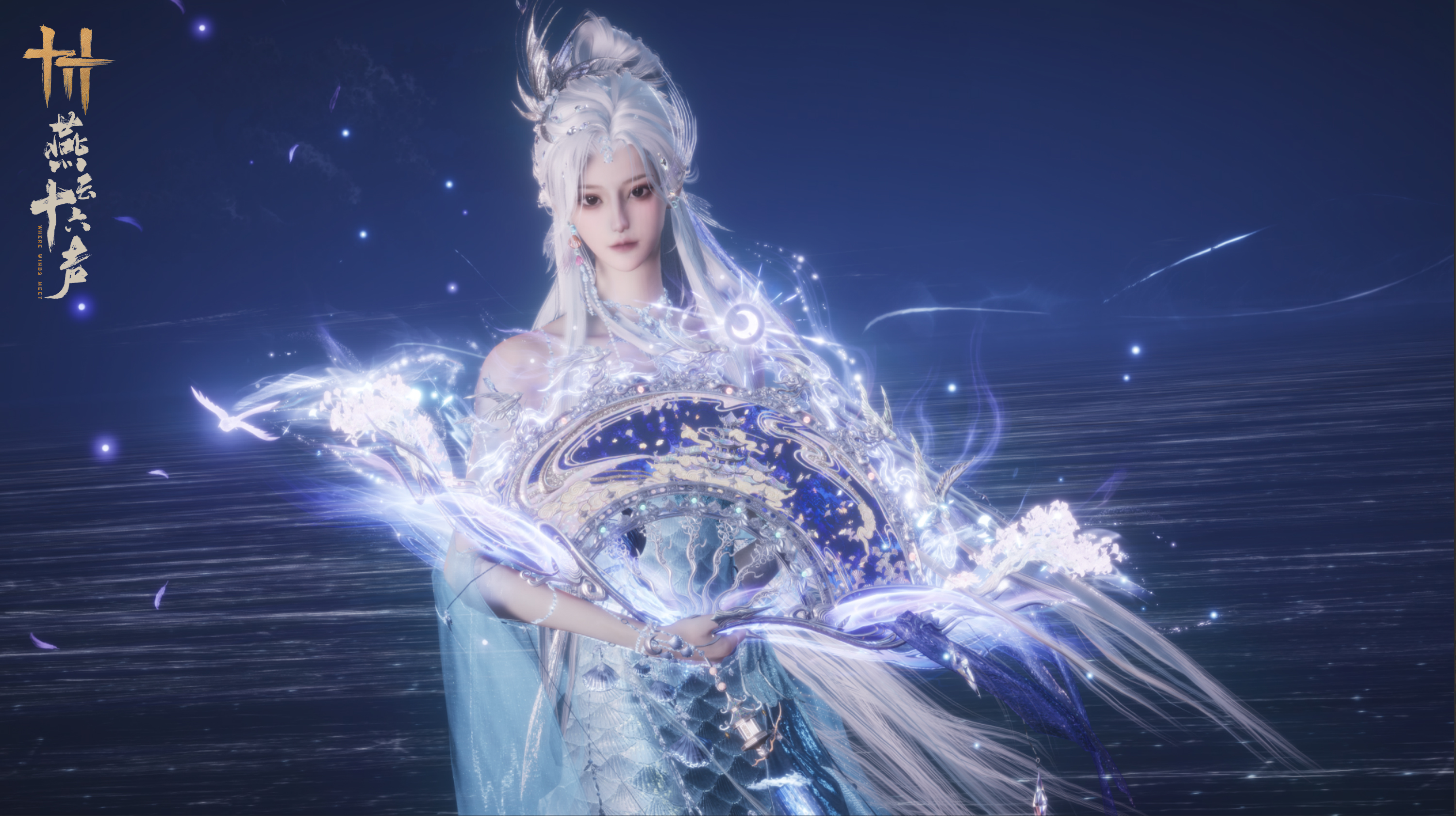 「套装·银汉」汇聚碧落与黄泉相撞的壮阔,诠释古人写意的星空河流,【律格-明光】开启后,飞星回旋,明灭闪烁。「套装·蓬瀛」以非遗螺钿工艺,织就古人诗歌中的仙岛宫殿,任意颜色词条下,绚丽光泽皆能夺目依旧。【律格-明光】开启后,飞鸟盘桓云间,鸣彻九霄。