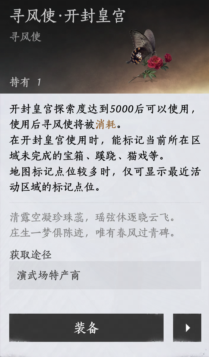 寻风使功能新增扩展区域开封皇宫。现能精准标记皇宫中的宝箱、蹊跷、妙妙喵等诸多探索内容的位置,皇宫冬日宝箱和冬日妙妙喵亦能循迹。探索从此变得简单高效,处处惊喜都能轻松获取。