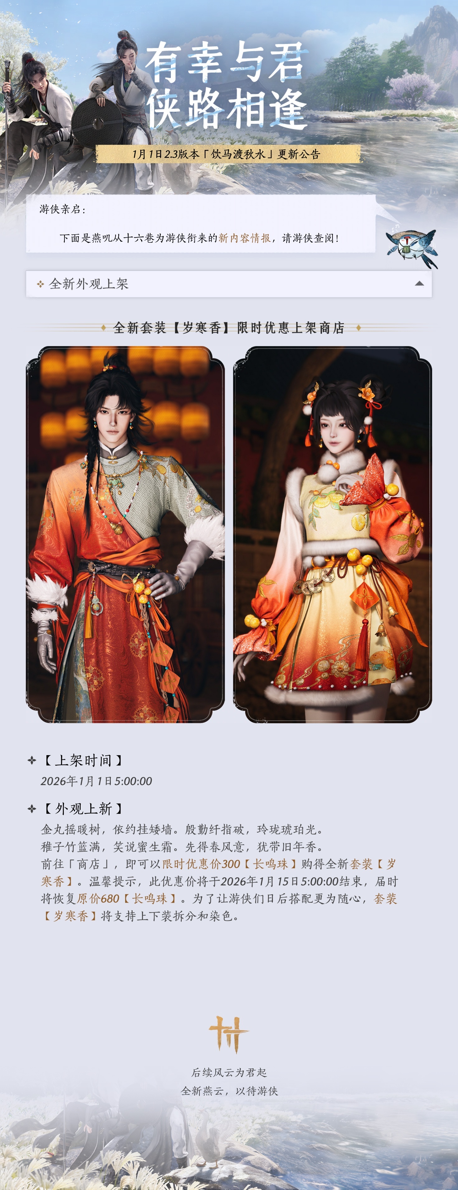 1月1日2.3版本「饮马渡秋水」更新公告